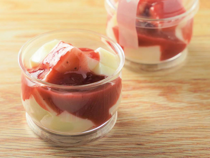 「さぬき姫いちご」の甘酸っぱい自家製ソースをミルキーなわらび餅にかけて、酸味が爽やかなラズベリーをあしらいました。