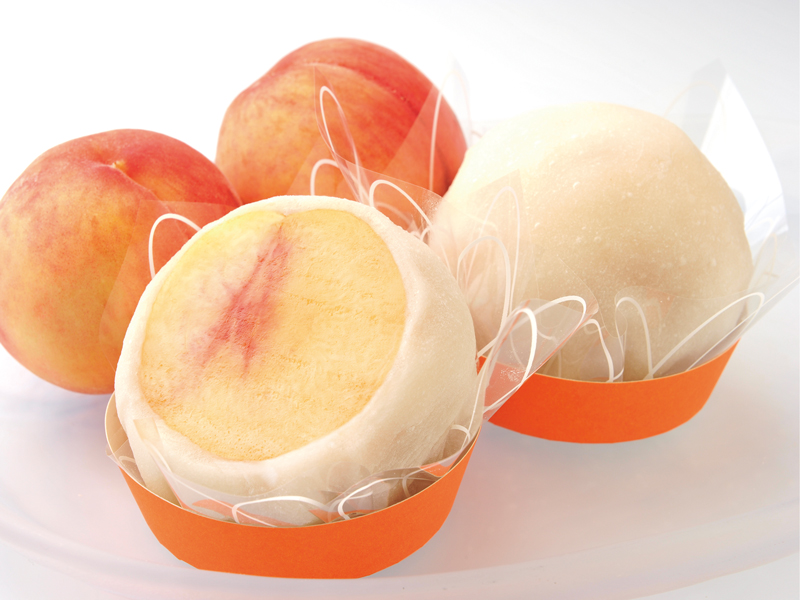 豊潤な香りと 甘く滴る果肉の、香川県産のフレッシュで柔らかな白桃の皮をむいて丸ごと大福に仕上げました。食べた途端、華やかな桃の香りとジューシーな果汁が溢れて 口いっぱいに広がります。