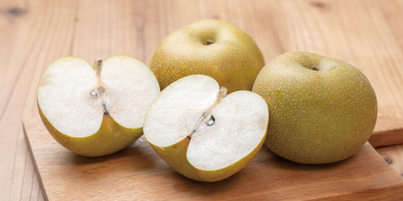シャリシャリとした独特の食感と瑞々しくて甘い味わいが特徴の果物。県内では、明治42年(1909)、観音寺市豊浜町和田地区で栽培が始まった。主力品種は「幸水」「豊水」「あきづき」など。毎年8月〜9月末頃まで、品種が入れ替わりながら味わうことができる。