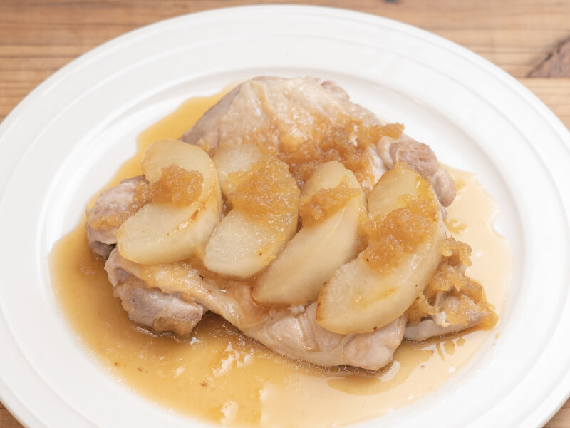 ナシの味わいが効いた爽やかなソースでさっぱりと食べられる一品。すりおろしたナシの食感もGood!
