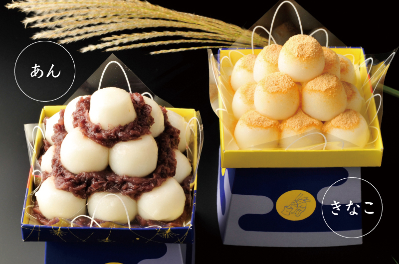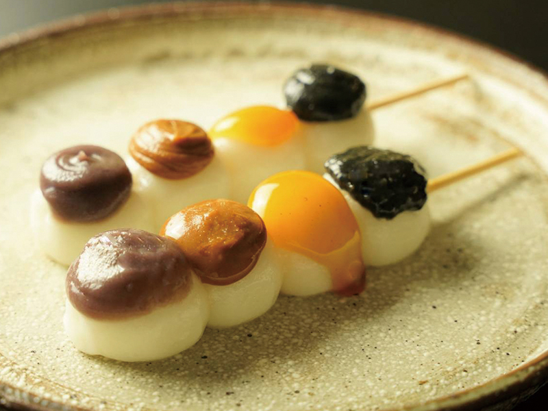 こし餡、きな粉、みたらし、黒ごまの4種の味わいをお楽しみください。