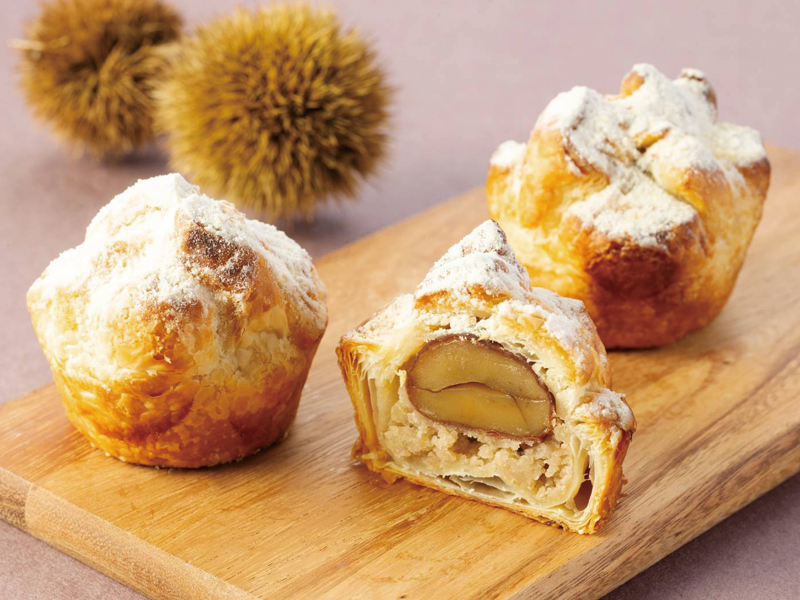 フレッシュバターたっぷりのパイ生地で、和栗のペーストを使った栗餡と、大粒の柔らかな渋皮栗 一粒を包んでオーブンでじっくりと焼き上げ、最後に「和三盆」を ふんわりと振り掛けて優しい甘さに。