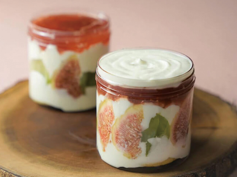 香川県はざま産のフレッシュないちじくと讃岐のシャインマスカットをまわりに並べ、中にも、シャインマスカット大福を丸ごと♪さらに生クリームと自家製のいちじくジャムをのせ、底にはどら焼きも敷いています。昨年の登場以来、特に女性に大人気!