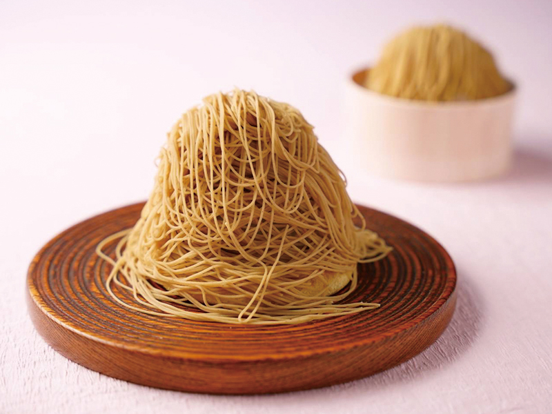 まわりを装った国産和栗の極細モンブランペーストの中には、粒あんの生クリーム大福と、渋皮栗が丸ごと1粒入り、底にはどら焼きの皮を敷いています。