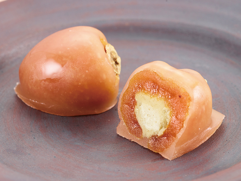 今年の柿大福は、香川県高瀬町の「刀根柿(とねがき)」で始まります。刀根柿の果肉は程よい硬さがあり、果汁が豊富でまろやかな甘味が楽しめます。柿と大福の相性はかなり良く、想像以上に美味しく仕上がっていますよ♪「刀根柿」が終わったら次は「富有柿」に代わります。