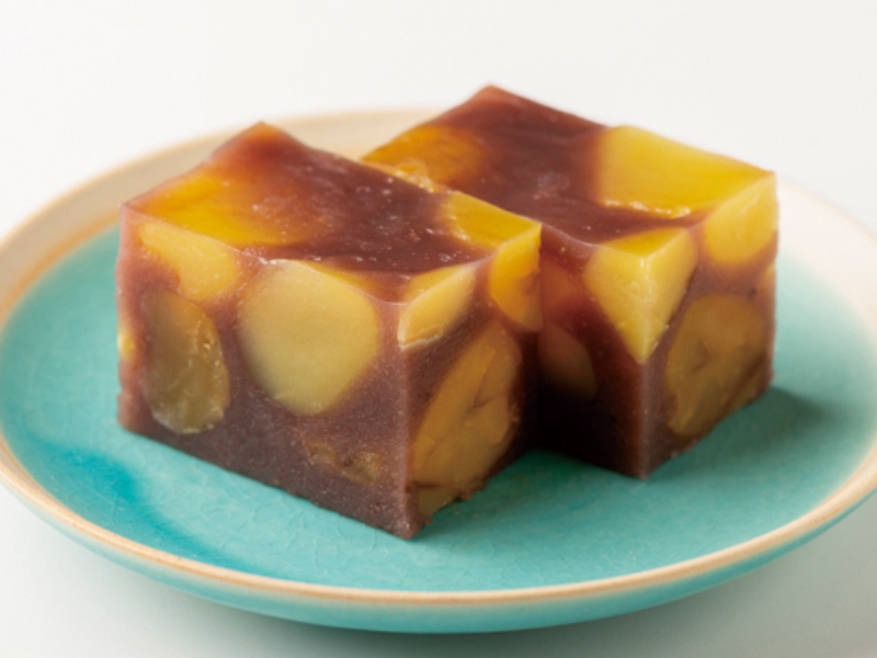 もっちりとした蒸し羊羹の中には、たっぷりと新栗が入っており、ホクホクの栗の風味と歯応えがお楽しみいただけます。