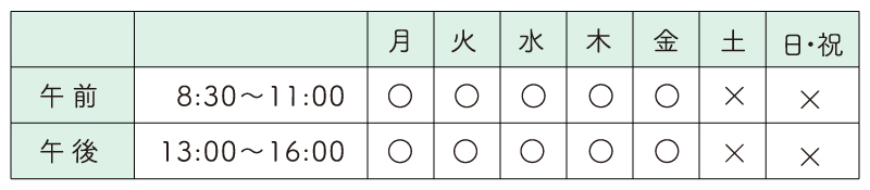 土曜、日曜、祝祭日、年末年始(12月30日~1月3日)