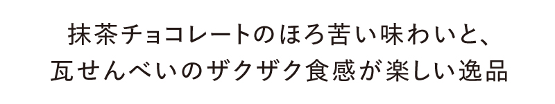 讃岐の銘菓「瓦せんべい」でおなじみの『宗家くつわ堂』で大人気の瓦クランチチョコに新商品が登場!一口目から口いっぱいに抹茶の風味が広がり、瓦せんべいのザクザクした食感、最後に抹茶のほろ苦さもしっかりと感じられる、新食感の抹茶スイーツ。香り豊かな抹茶チョコレートと、クランチのハーモニーがたまらない!お茶請けやお土産にもオススメの逸品。
