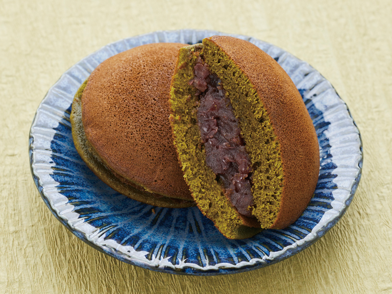 西尾の抹茶を贅沢に練り込んだ生地をしっとりと焼き上げ、やさしい甘さの粒あんを挟んで。爽やかに抹茶が香る風味豊かな新商品のどら焼き。