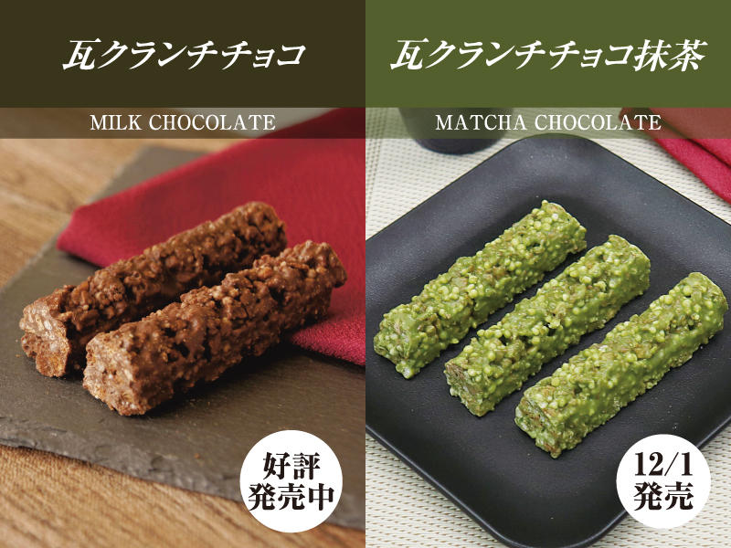 大人気の瓦クランチチョコに新しく風味豊かな抹茶味が新登場!