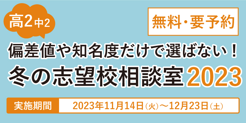 冬休みは受験生にとっては最後の踏ん張り時。そして、受験生の姿を見ながら高2・中2のみなさんは「次は自分たちの番だ」と受験を実感していきます。『アクシス』では、そんな未来の受験生の皆さま一人ひとりに最適なプランをご用意してスタッフ一同お待ちしております。 ※2023年11月〜2024年1月ご入会の方、個別指導5回を9,900円で体験できる冬得キャンペーンを実施中!
