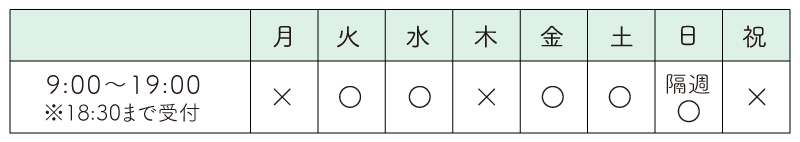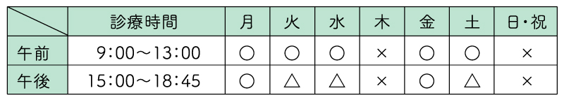 ※受付時間は診療時間の30分前、臨時休診日あり。