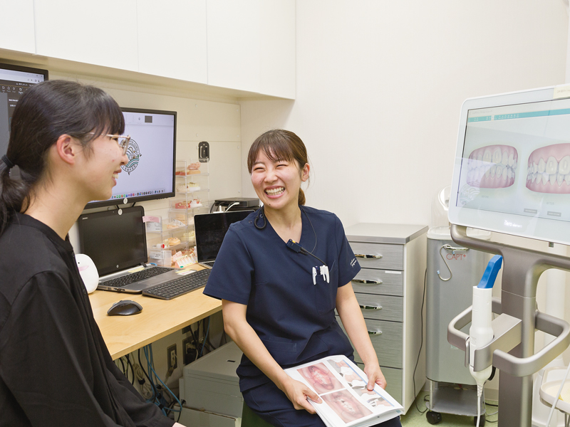 当クリニックは、他の病院で治療が難しい、外科的な手術が必要、生まれつき障害を持っているなど、「ここでしかできない治療だから」と、四国はもとより全国からさまざまな症状や悩みを抱えた患者さんが来院します。特に、言語聴覚士が常勤している歯科クリニックは、全国的にみても少ないでしょう。矯正歯科治療中に、言葉が上手く出てこない、発音が難しいといった困難が生じたお子さんには、「ことばのきょうしつ」を通して、治療の一環として訓練などサポートをしています。さらに当院が運営する、児童発達支援・放課後等デイサービスの「ぷらすこ」との連携も図りながら、「ことばの発達」と「口腔内の発達と健康」をトータルで診ていくことを目指しています。