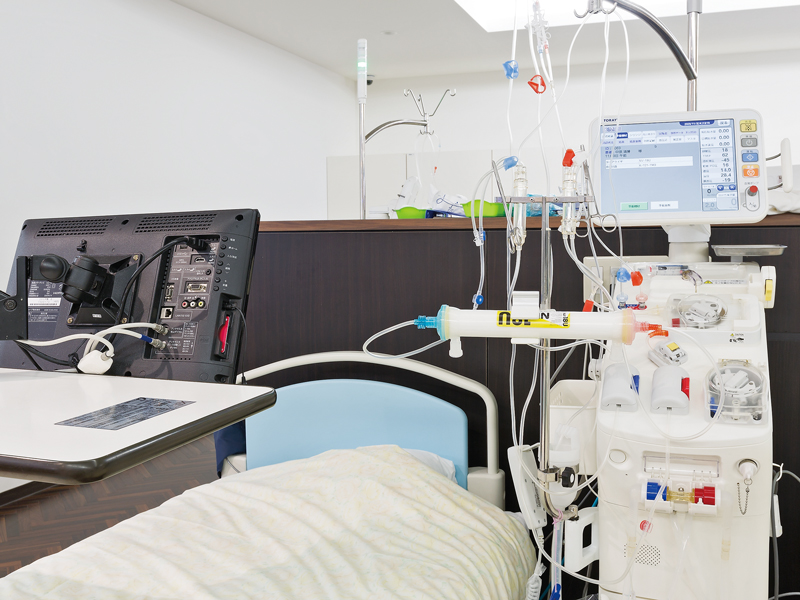感染対策を講じ、人工透析室には、液晶テレビ、有線放送装置を設置し快適に治療できます。