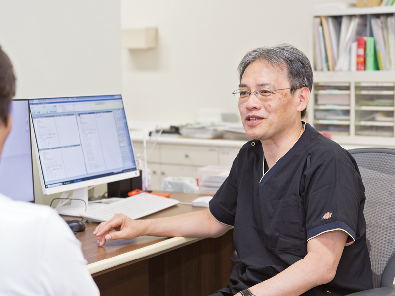 当院は腎臓内科、透析医療を中心に、内科疾患全般の診療を提供。患者さんを診察した際に、自分や家族であればどういった治療を望むかを常に考えながら地域医療に貢献しています。透析治療では「しっかり透析」を目標に、本来の腎臓機能に少しでも近づくことができるよう、透析時間はできるだけ長く5時間透析を標準とし、より十分な透析を希望の人には週3回6時間以上の長時間透析にも対応。可能な限りハイスペックの透析療法を導き、生活の質の向上に努めています。