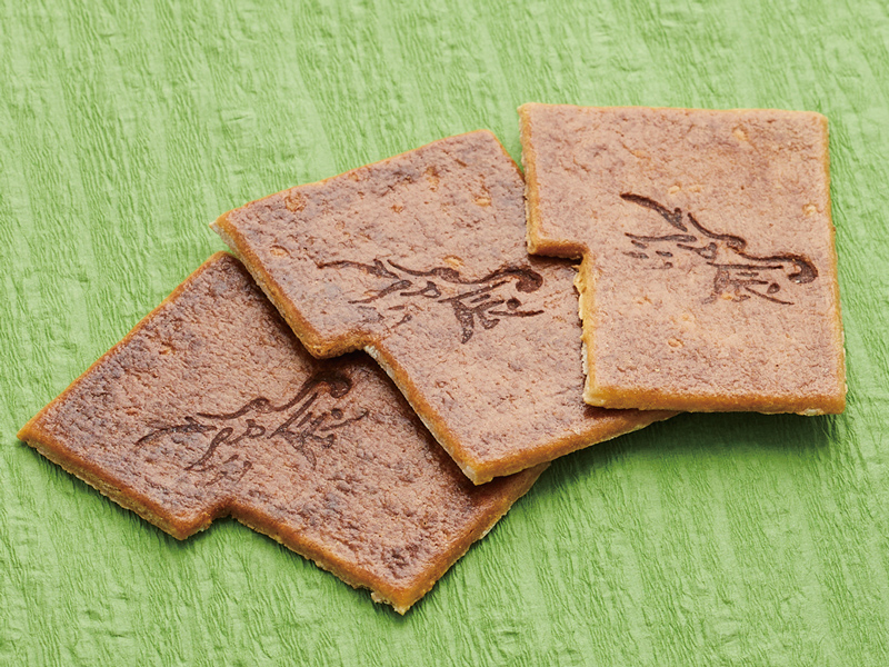 令和6年の干支「辰」にちなんで辰の焼印をあしらった小瓦せんべい