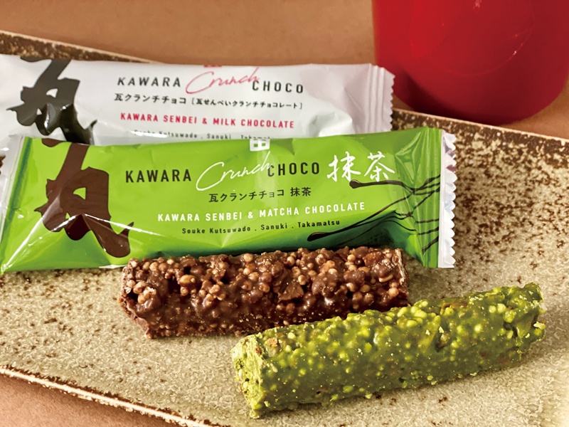甘いミルクチョコレートと瓦せんべいを砕いて混ぜ合わせたザクザク新食感が人気の瓦クランチチョコ。新たに抹茶チョコも仲間入り♪上品な抹茶の風味が絶妙です。