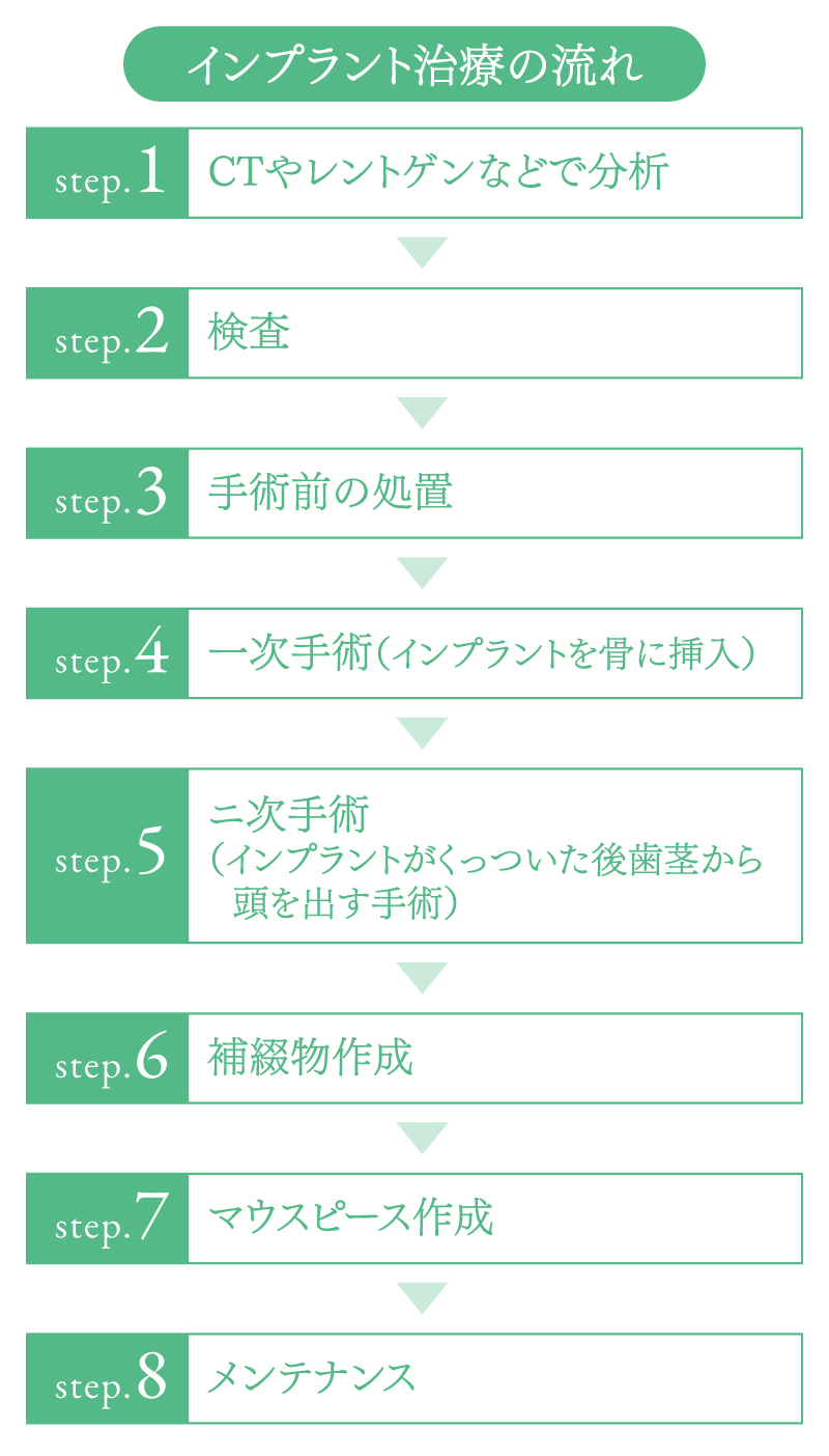 Q.インプラント治療の流れや期間の目安について教えてください。