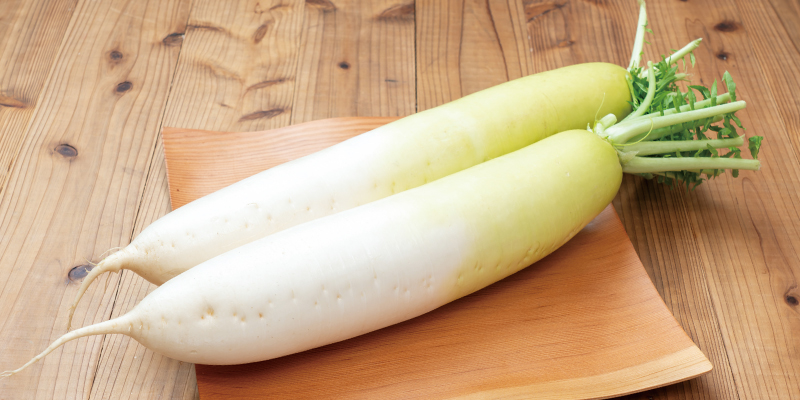 ダイコンを水にさらすことで、辛味・苦味を抜き、食感をよくすることができる!生食の場合は、甘みがある上部を使うのがおすすめ!