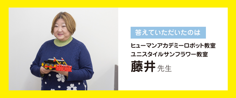 答えていただいたのは:ヒューマンアカデミーロボット教室 ユニスタイルサンフラワー教室 藤井先生