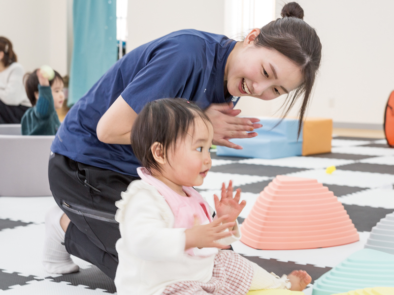 怖がる理由は個々により違っているので、まずは、鉄棒が楽しいと思ってもらえるように運動していきます。例えば、鉄棒をくぐったり掴んだり、また、鉄棒の上にマットを乗せて、先生と一緒に登ったり下りたりと鉄棒に慣れてもらうことから始めていきます。鉄棒に慣れることで、怖いから楽しい。 楽しいから好きに変わっていきます。