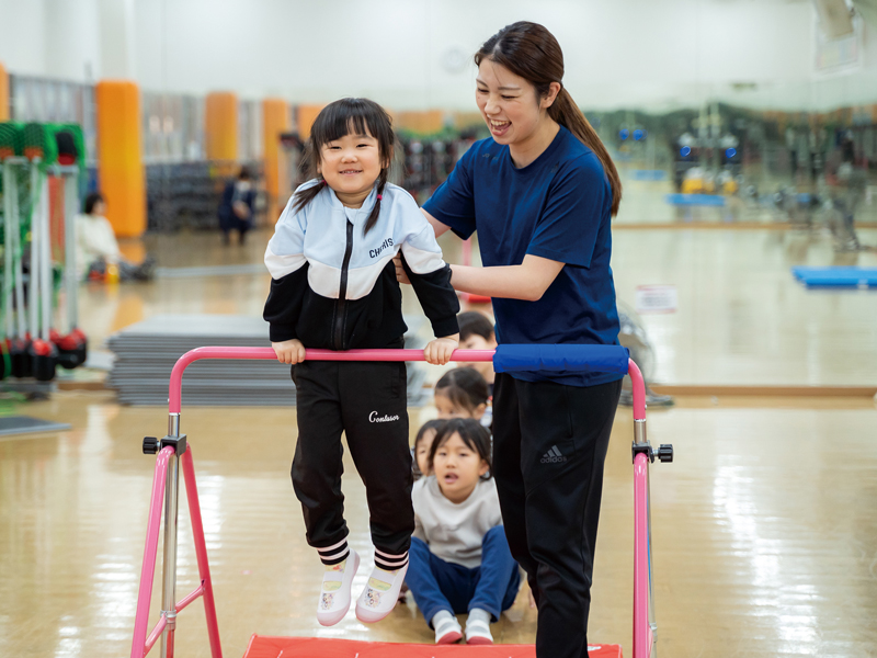 跳び箱、鉄棒、マットなどの機器を活用し、楽しみながら運動するだけでなく、グループでの活動を通じて社交性や協調性を養います。単に身体を鍛えるだけでなく、チームワークやコミュニケーション能力を向上させることも重視しています。