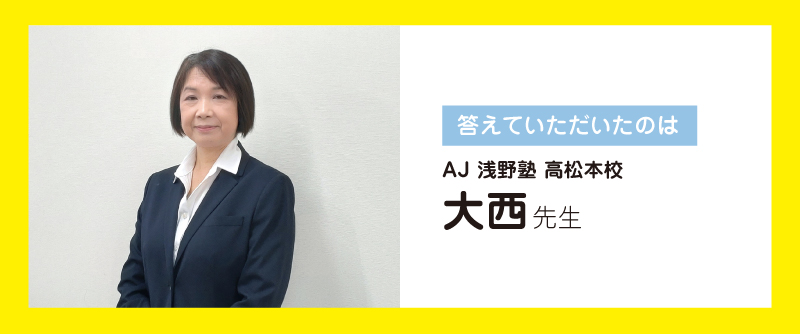 答えていただいたのは:AJ 浅野塾 高松本校 大西先生