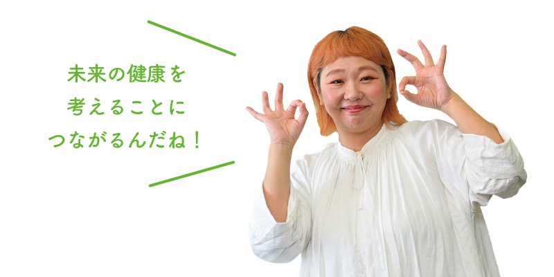 六車美紅さんは、「職場で年に一度、定期健診を受けています。その検査結果が自宅に届き、要再検査と書かれていました。しかし、検査項目の内容だけではどの科を受診すればよいのか分からず医療従事者である家族に相談。その後、専門医に診てもらうことができ現在治療中です。早くに分かって安心しています」と笑顔。今回の健診結果をきっかけに、バランスの良い食事を取ることや通勤や通学以外にも運動量を増やすことを心掛け、自身の健康だけでなく、親子で考える良い機会になったそうです。