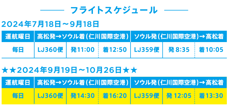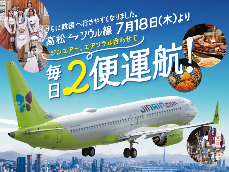 高松ーソウル線 2024年7月18日(木)よりジンエアー、エアソウル合わせて毎日2便運航!