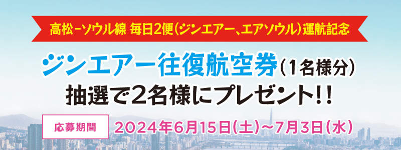 高松‐ソウル線 毎日2便(ジンエアー、エアソウル)運航記念 ジンエアー往復航空券(1名様分)抽選で2名様にプレゼント!!