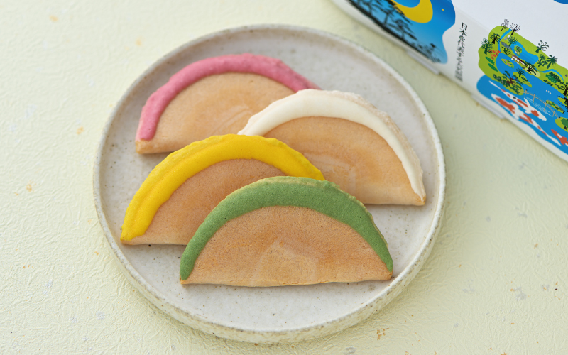特別名勝『栗林公園』で香川の名産品を扱う『かがわ物産館栗林庵』と1957年より最中種・麩焼煎餅を製造する老舗『高尾最中種商店』のコラボ商品。香川県産のもち米と和三盆を使用し、4つのフレーバーで季節の移ろいを表現。昨年新しく加わった「月」は爽やかな香りと酸味が人気で、『SETOUCHIPOWDER LAB』の石野氏が手掛けるレモン果汁のパウダーが、深みのある味わいを演出。香川を代表するデザイナー・藤本誠氏が手掛けるパッケージも可愛らしい。プロたちがタッグを組んで贈る、優しい讃岐のお菓子をぜひ。