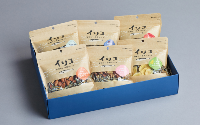 香川県伊吹島の沖合で漁獲されたカタクチイワシを加工した「伊吹いりこ」は新鮮で安全な健康食材。その「伊吹いりこ」をもっと手軽に食べられるようにしたのが佐々木進商店の「小魚シリーズ」。」人気のシリーズに新作の「バナナチップと伊吹の小魚」「丹波黒と美味しい小魚」「ひび辛大柿と伊吹の小魚」の3種が加わってさらに充実。収穫から加工まで僅か30分という鮮度の良さも自慢の「伊吹いりこ」はカルシウムなどの栄養価も豊富。健康を気遣う人や子どものおやつにぜひチェックして。