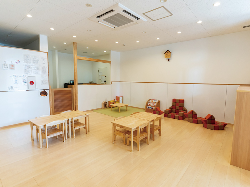 こうざと矯正歯科クリニックが運営する、児童発達支援・放課後等デイサービス多機能型「ぷらすこ」。多動性障害(ADHD)や学習障害(LD)、発達障害のある子どもへの支援を目的とし、お子さんの困りごとや発達の状況、障害の特性に応じて、個別の支援計画を作成し、一人ひとりが笑顔で楽しく遊びながら学べる環境を提供しています。隣にはカフェスタイルの広い待合室も設け、リラックスできる工夫も施されています。「子どもが発達障害かも?」「育児について相談したい」と思ったときには、まずはお電話でご相談ください。