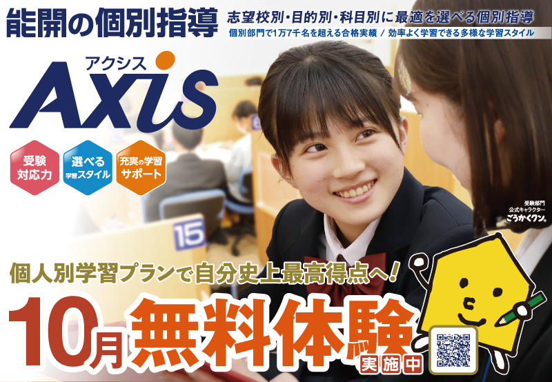 受験生の皆さん、夏休みの学習は順調に進んでいますか? 「思うように勉強が進まない」「新たな課題が見つかった」という方へ。アクシスでは、受験のプロが目標を見据えた逆算思考で「合格プラン」を作成し、どの部分を強化すべきか、いつまでに何をすべきかを明確にします。迷うことなく最短距離で志望校を目指せるようサポートします。1~2年後に受験を控えるあなたも、日々の学習が受験の結果に大きく影響します。今から正しい学習方法を身につけ、将来の受験に備えましょう。