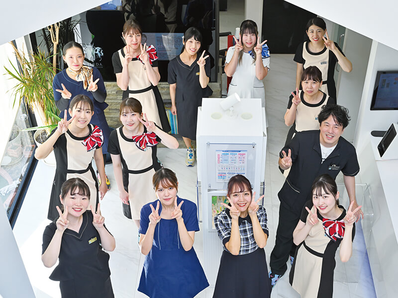 当医院には私以外にも専門衛生士などの資格を持つスタッフが在籍しており、インプラントや審美治療をご希望の患者様も数多く診させていただいております。お悩みの患者様はどうぞ遠慮なくご相談ください。また、当医院では資格を取得したいスタッフのバックアップ体制も整っており、専門衛生士を目指しているスタッフも何人もおり、一緒に勉強したい方を随時募集しています。見学からでも大丈夫ですので、ご希望の方はご連絡ください。