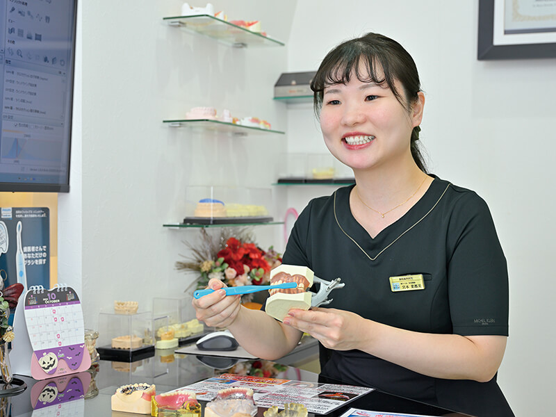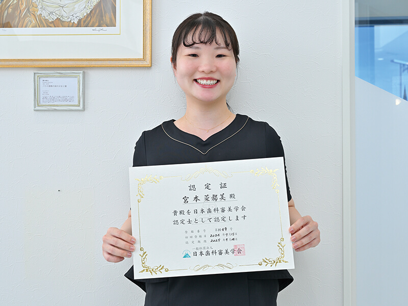 より患者様に寄り添える歯科衛生士を目指したいと思い、認定心理士の資格を取得するため通信制の大学で勉強しています。心理学の知識や、カウンセリングの技術を学ぶことで、患者様とコミュニケーションをとる過程で、患者様の気持ちを引き出せることで治療を円滑に進めていきたいと考えています。