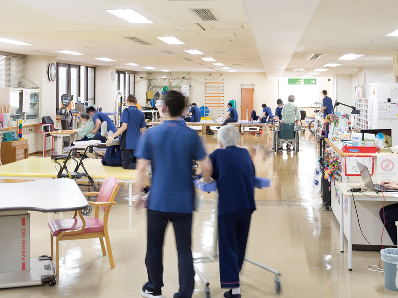 回復期リハビリテーション病棟では、治療後の体力や身体機能、日常生活能力の回復を目指し、患者さんの状態に応じたリハビリを365日行っています。