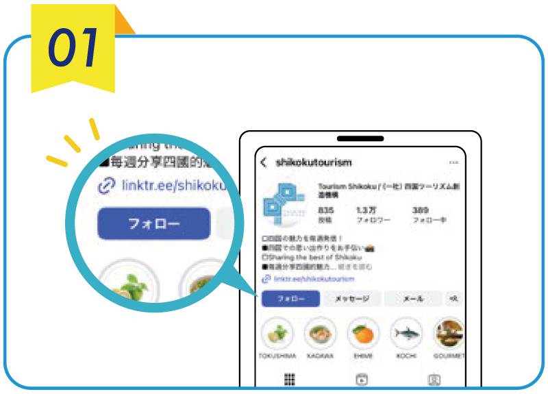01:四国ツーリズム創造機構公式アカウント(@shikokutourism)をフォロー