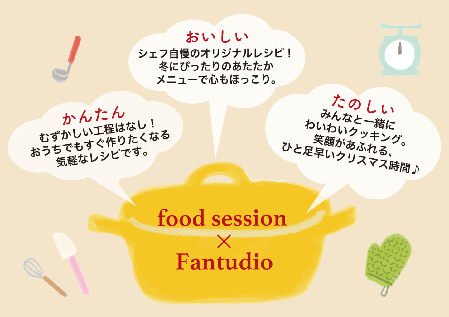 会場は「瓦町FLAG」地下1Fにオープンした 話題の複合型施設「FantudioTakamatsu」内のキッチンスタジオ。 美味しい時間と出会いをシェアできる気軽な交流会です。 料理初心者の方も大歓迎、お友達同士やお一人でも安心して参加可能! みんなで楽しく、ひと足早いクリスマス会もしませんか?!