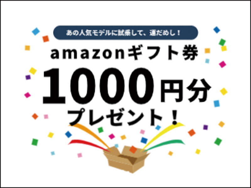 あの人気モデルに試乗して運だめし!試乗or査定後、店舗にて応募いただいた方の中から抽選で10名様にAmazonギフトカード1,000円が当たります!【提供:ナイスタウン】