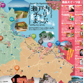 観光名所や絶景ポイントを結び、各ルート周辺の美味しいスイーツ店を紹介する「瀬戸内チャリまっぷ」をさぬき市と東かがわ市が共同で制作。