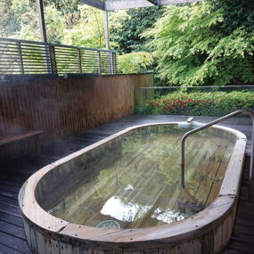 ナトリウムを含む広々とした大浴場と、鉄分が豊富な小浴場。泉質の異なる2つの湯を楽しみながら、心も体も癒される。