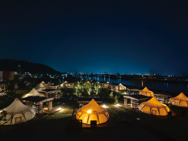 手ぶらで行けて温泉も楽しめる初心者でも安心なハイブリッドキャンプ場!